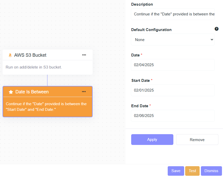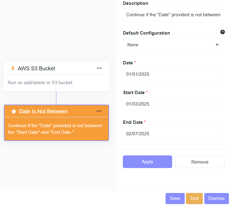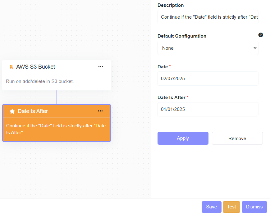 - Description: Continue if the "Date" field is strictly after "Date Is After".