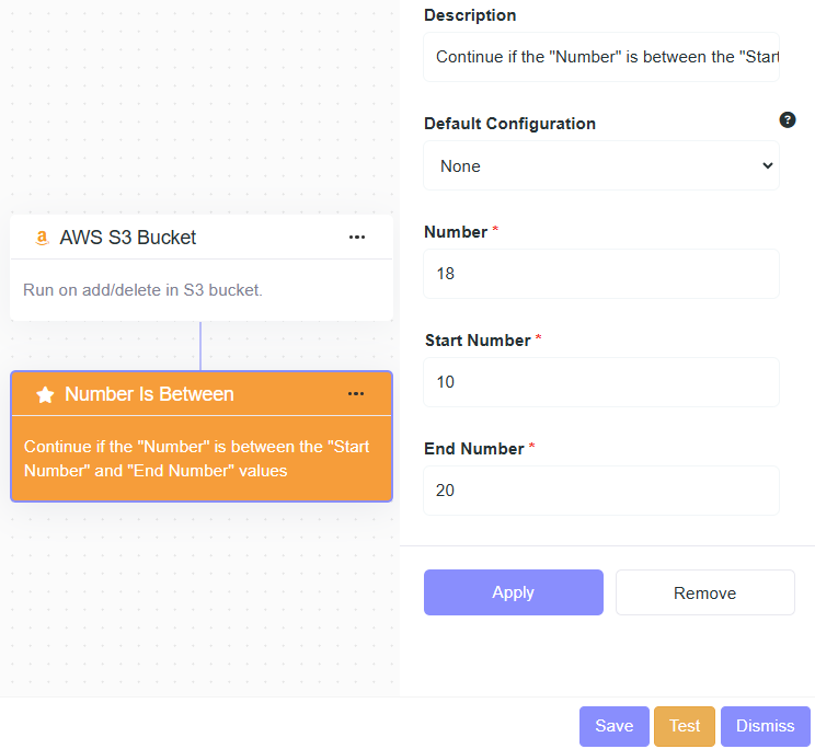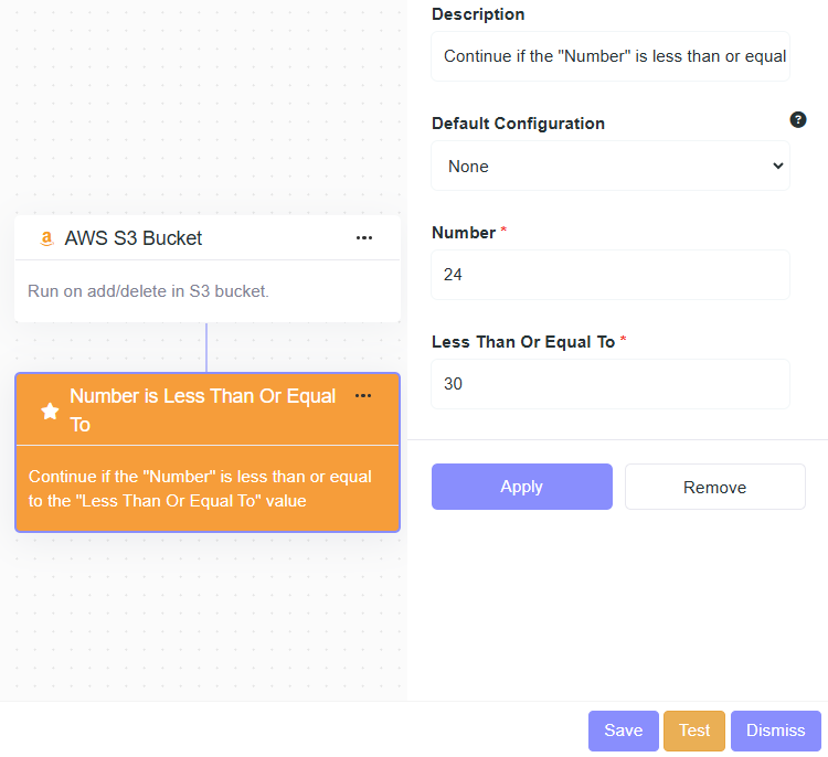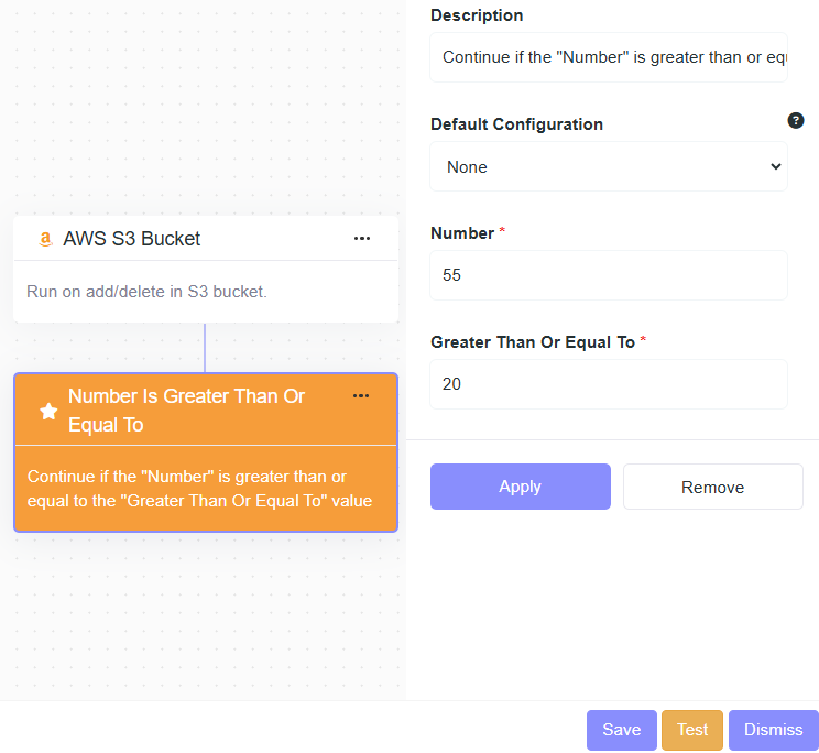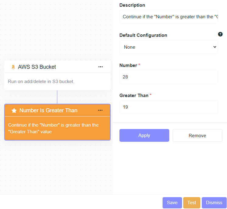 - Description: Continue if the "Number" is greater than the "Greater Than" value.