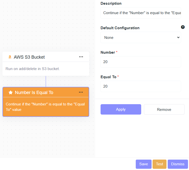 - Description: Continue if the "Number" is equal to the "Equal To" value.