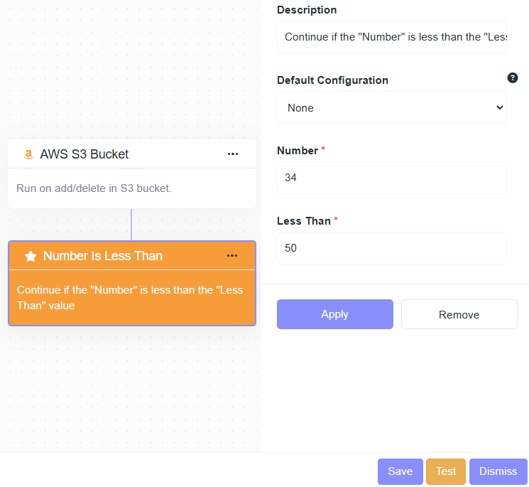 - Description: Continue if the "Number" is less than the "Less Than" value.