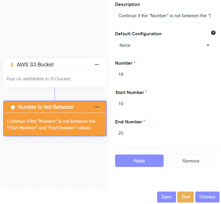 - Description: Continue if the "Number" is not between the "Start Number" and "End Number" values.