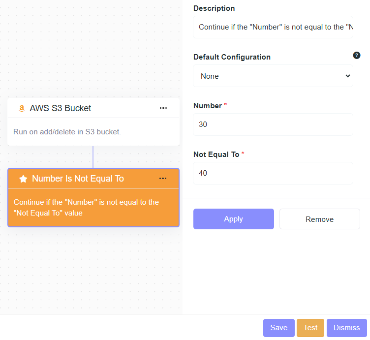 - Description: Continue if the "Number" is not equal to the "Not Equal To" value.