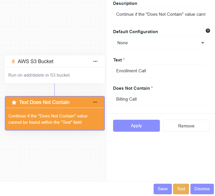- Description: Continue if the "Text Contains" value can be found within the "Text" field.