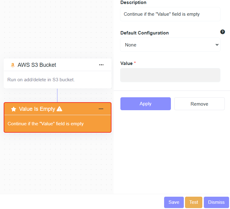 - Description: Continue if the "Value" field is empty.